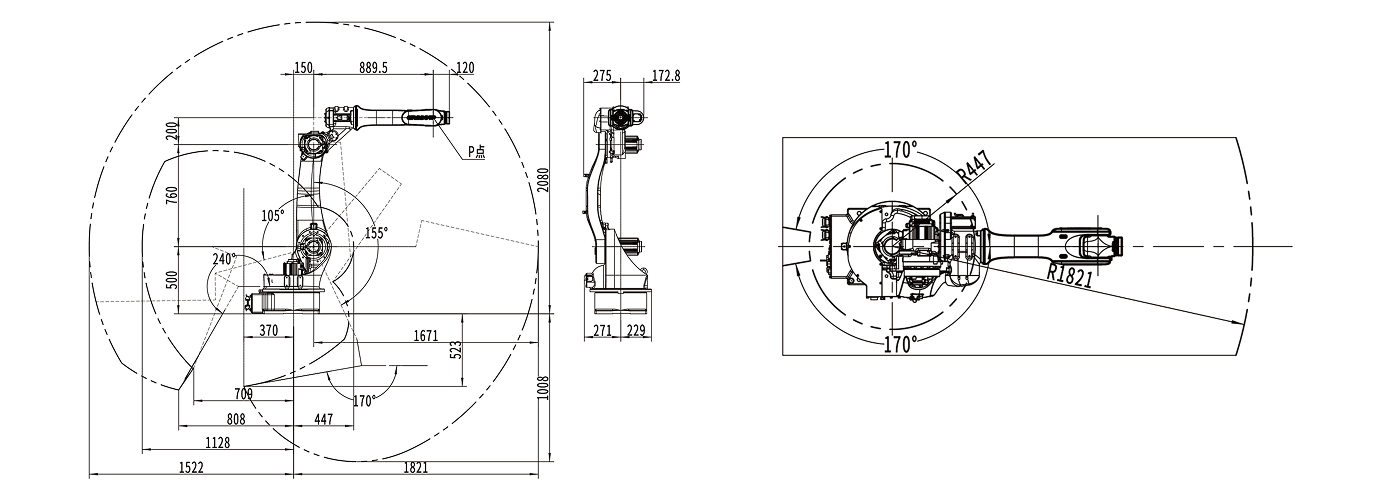 • The design of the robot is highly compact, which is more light weight, especially the wrist is slender, so it can be applied in more scenarios.