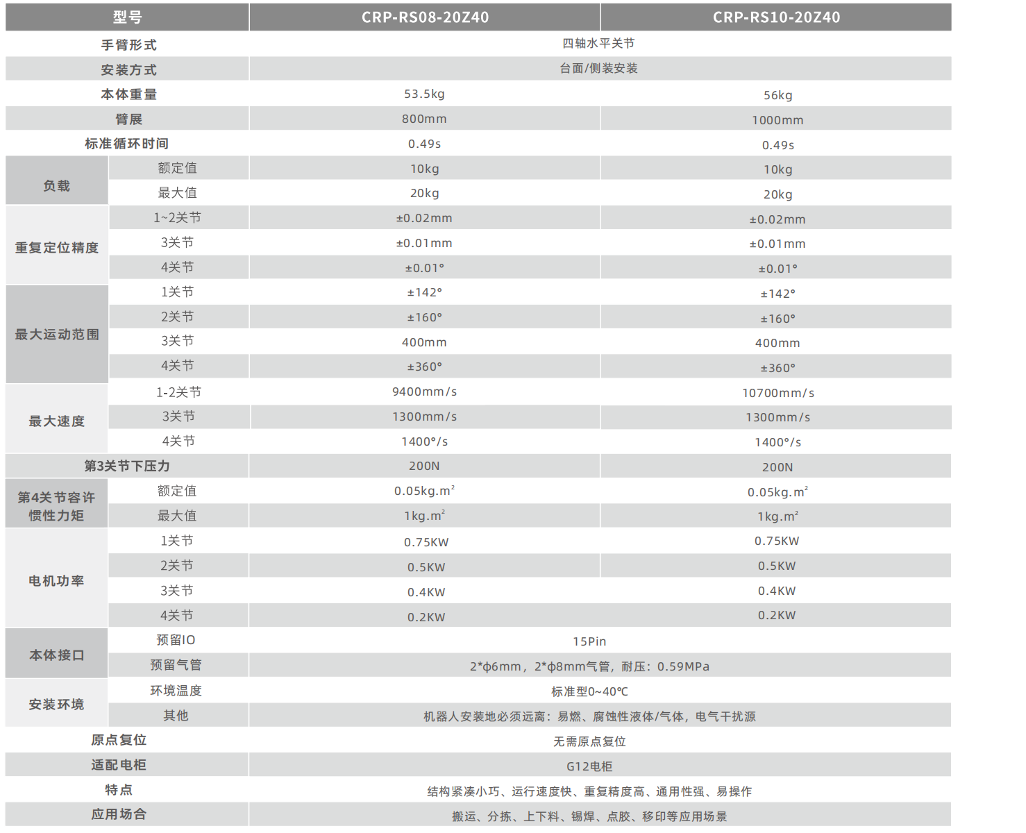 ? 可提供1000毫米臂長規(guī)格,最高有效負(fù)載可達(dá)20kg,額定有效負(fù)載為10kg。