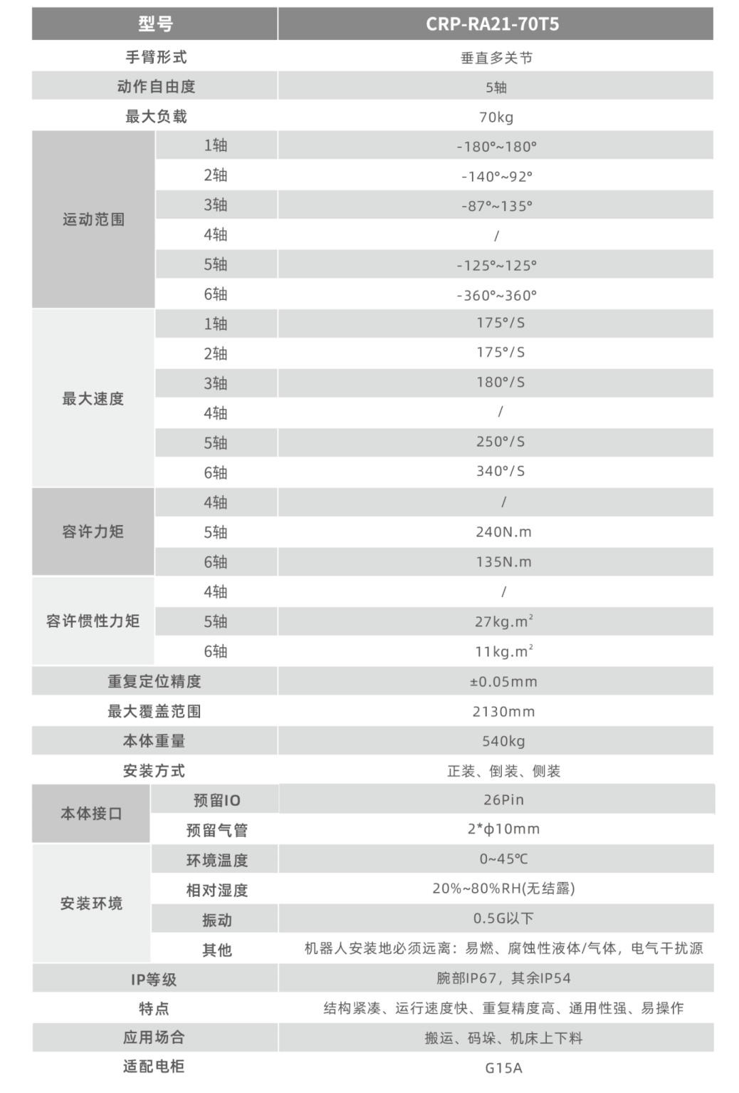 • 運(yùn)行速度快,重復(fù)定位精度,適用于搬運(yùn)、裝配、打磨等場(chǎng)景。