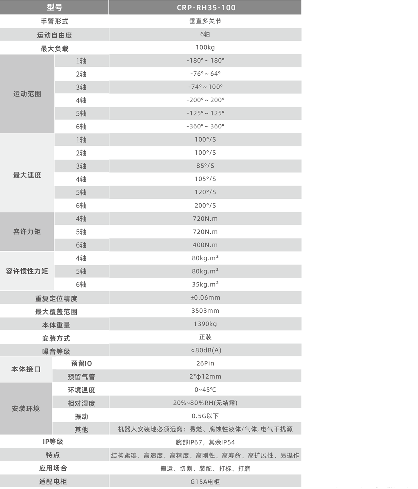 • 手臂電機(jī)內(nèi)置,外觀簡潔,適于狹小空間作業(yè),運(yùn)動更靈活。
