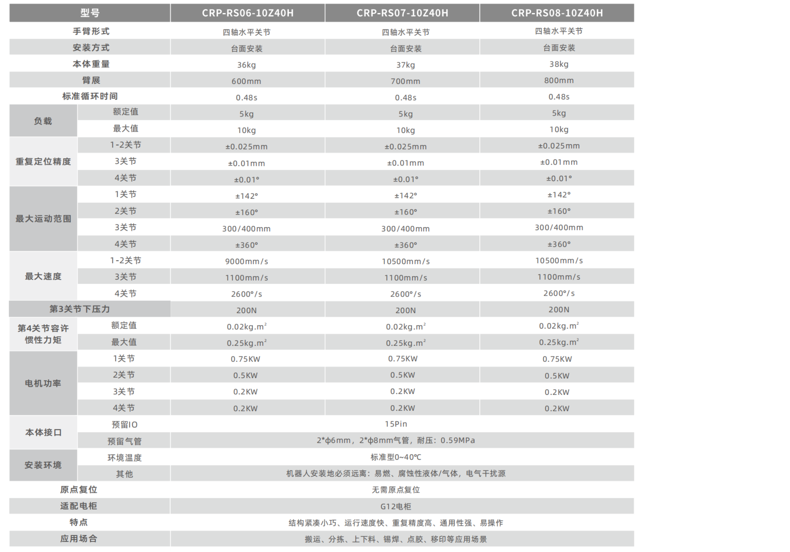 ? 可提供600毫米臂長(zhǎng)規(guī)格,最高有效負(fù)載可達(dá)10kg,額定有效負(fù)載為5kg。