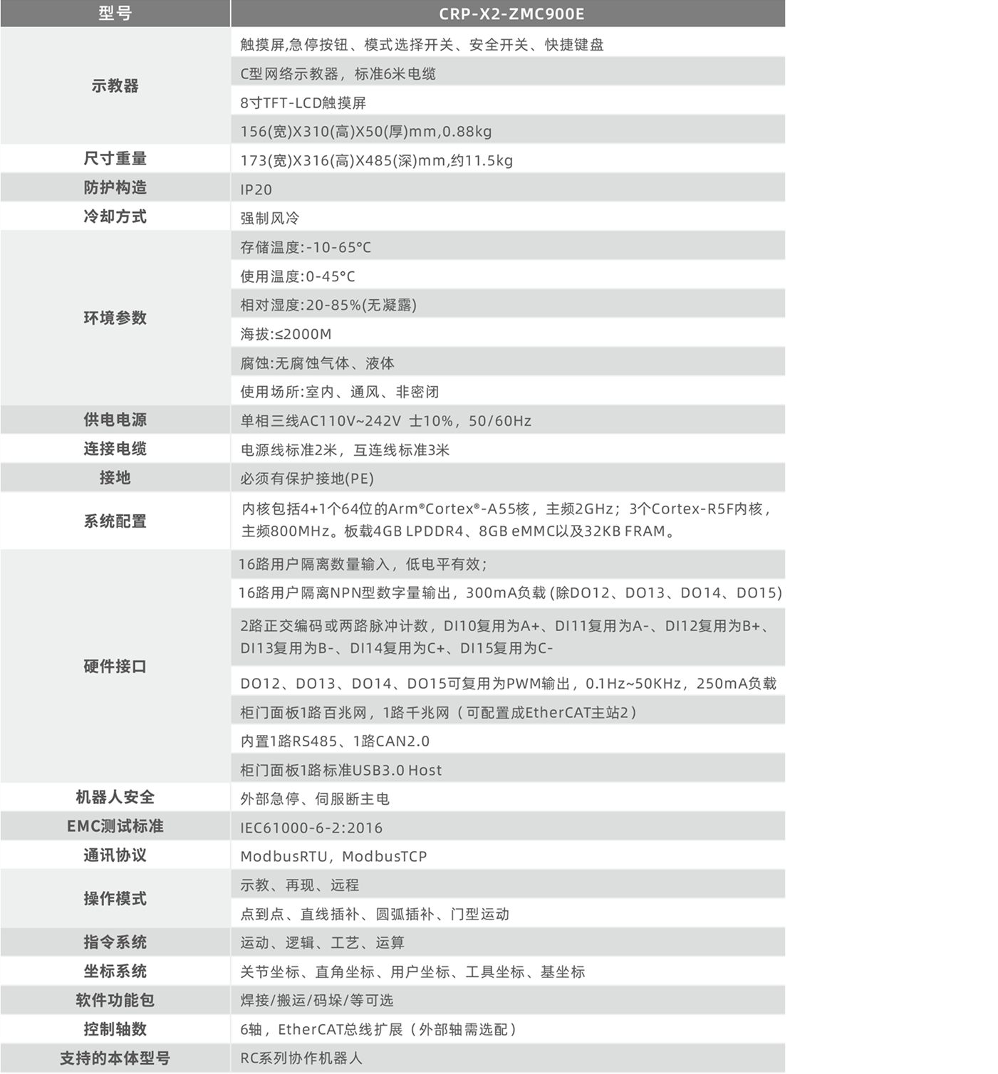 CRP-X2-ZMC900E 電箱簡(jiǎn)稱(chēng)X2電箱,為ARM平臺(tái)下協(xié)作機(jī)器人專(zhuān)用電箱。