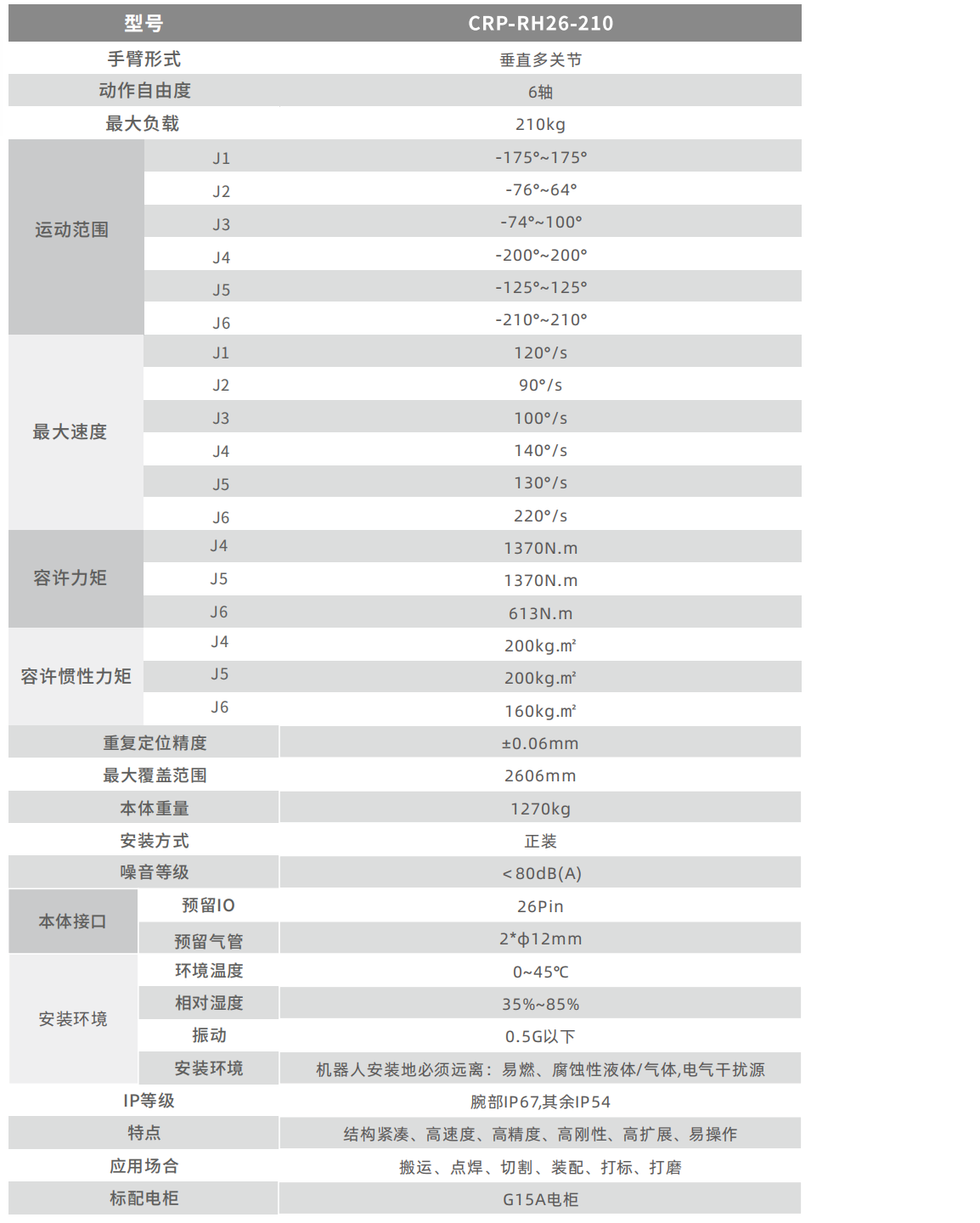 手臂電機(jī)內(nèi)置,外觀簡潔,適于狹小空間作業(yè),運(yùn)動(dòng)更靈活。
