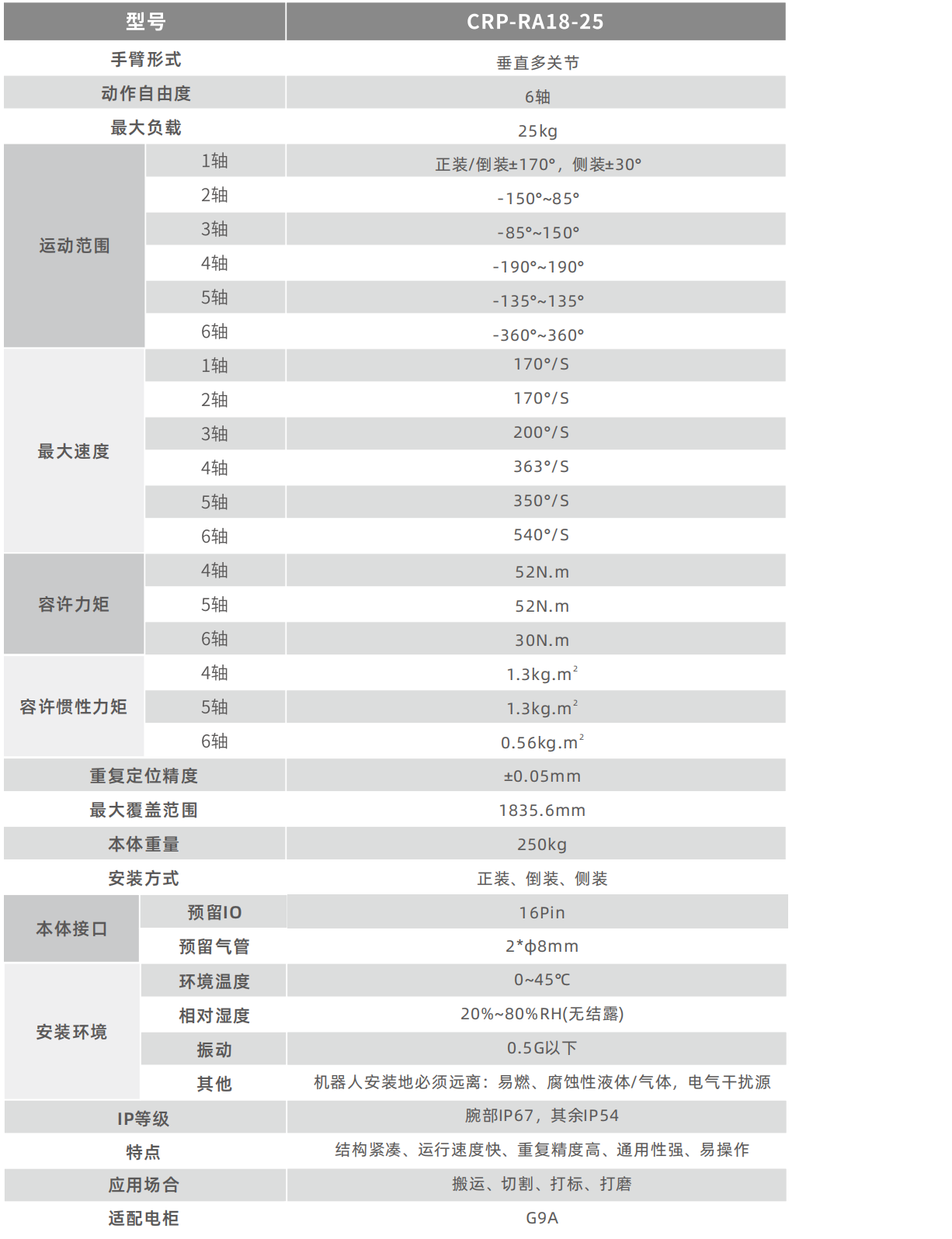 機(jī)器人剛性高,采用高速電機(jī),節(jié)拍更快。機(jī)器人電機(jī)采用密封設(shè)計(jì),防護(hù)等級高達(dá)IP67,適應(yīng)更惡劣的應(yīng)用環(huán)境。
