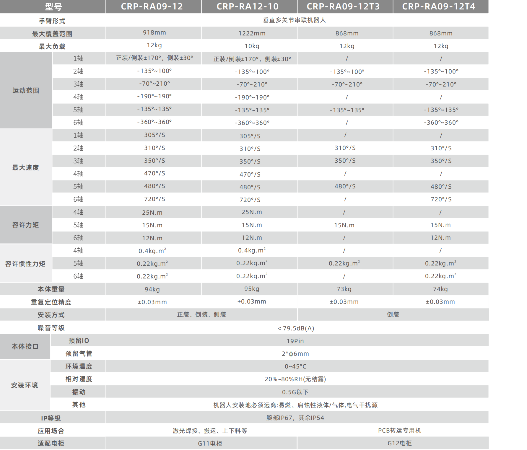• 高速高精,效率更高。整機(jī)采用全鋁機(jī)身設(shè)計(jì),較同級(jí)別產(chǎn)品質(zhì)量更輕,RA09-12系列相比RA09A-07系列左右速度提高了30%,標(biāo)準(zhǔn)門型軌跡0.42S,重復(fù)定位精度士0.03mm,實(shí)現(xiàn)快速生效,提高生產(chǎn)產(chǎn)能。